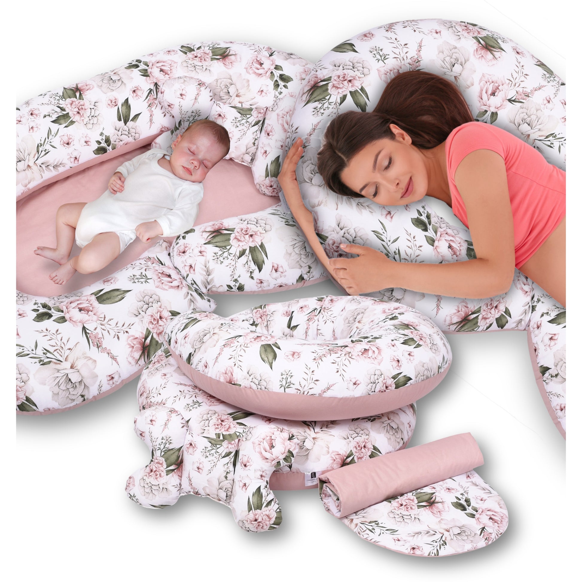 - po porodzie poduszka idealnie sprawdzi się jako precel terapeutyczny lub gniazdko (dla kobiet po CC), dzięki niej znacznie łatwiej będzie ci karmić dziecko zarówno w pozycji siedzącej jak i leżącej